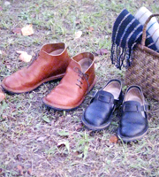 | ■靴の履き方 履き口が小さいため、始めはたっぷりと紐を緩め足を入れ、紐を縛る前に 踵を床にトントンと突き、踵をしっかりと入れてから紐を縛って下さい。 その状態で足長が、履いたサイズと合うか見て下さい。 指先から1.5cm以上のゆとりを確認してください。 そして靴のシワを気にせず歩いてみてください。 サイズは数字で見ず、ゆっくり考えて選んでください。 靴を試し履き出来るようにサンプル靴があります。 お店に足を運べない方は、ぜひご連絡ください。 |