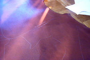 | 2/4 雪のおかげで、家の中にたくさんの光が入ってきた。 それを機に、革に型入れ型入れ。 |